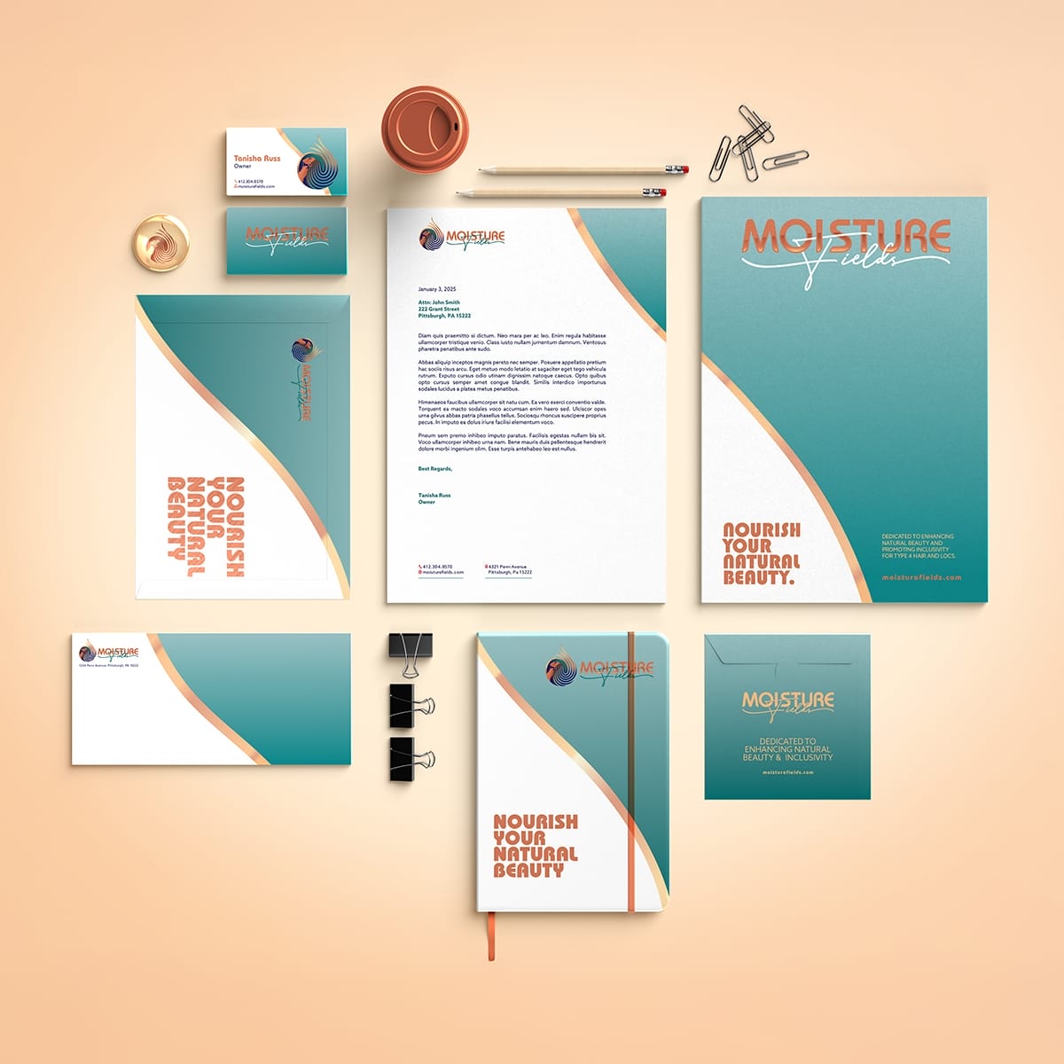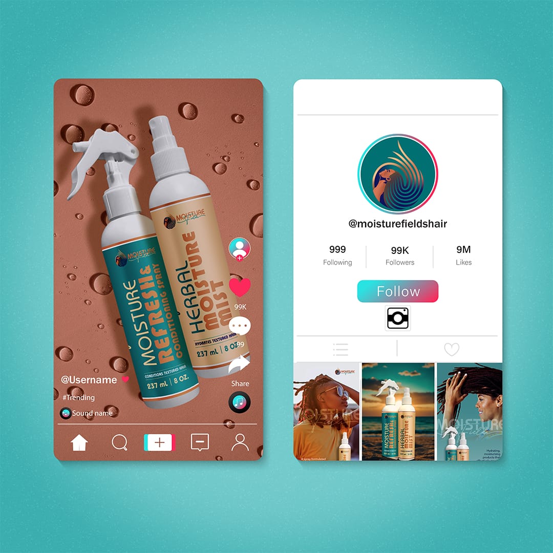 Moisture Fields, a trailblazer in type 4 hair and loc care, sought a brand identity to match their innovative formulations. Solid Optix embraced this challenge, creating a striking visual narrative that resonates with their target audience.